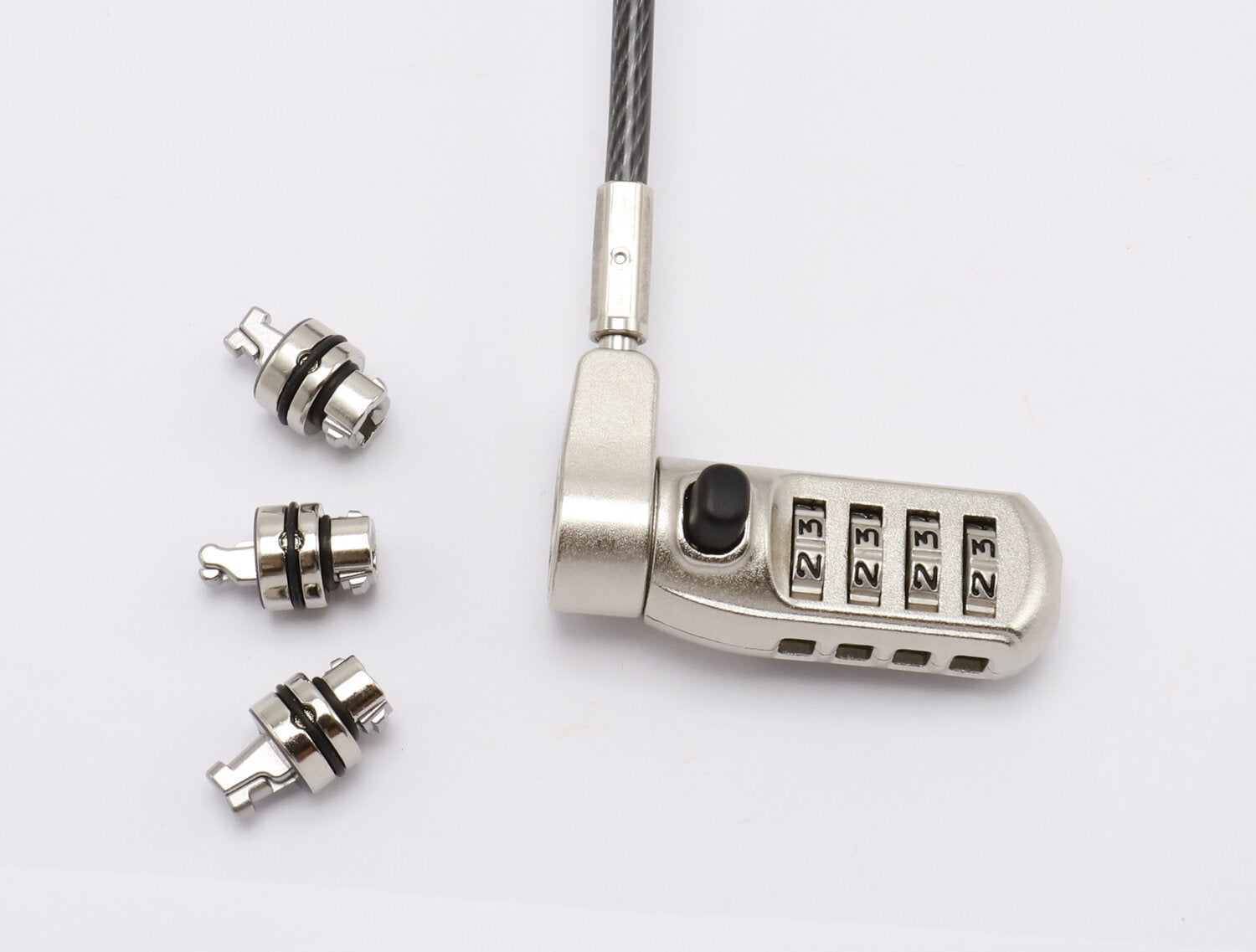 Get the Anti-Theft Security Universal Serialized Combination Lock Body & Cable w/ T-Bar, Noble, and Nano Lock Heads System from CODi to secure your device. Included are three interchangeable lock heads to provide universal compatibility for standard T-bar, Noble, or Nano-style security slots. Secure your assets with a product that allows up to 9,999 different serial combinations. With a lock head made from durable zinc and a galvanized 6.5’ PVC coated steel cable, your device is sure to be protected from theft and tampering. A password protected database allows designated security personnel to look up pre-set 4-digit codes that correspond to laser engraved serial numbers on each lock. The password protected database can be accessed online, or if requested, provided direct to the Security Manager.