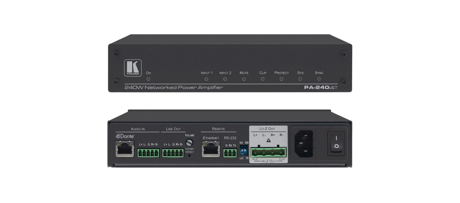 - 13-80527130 - Kramer Electronics PA-240NET IS A HIGH-PERFORMANCE, SELECTABLE HI-Z (70V/100V) OR LO-Z (4OHMS/8OHMS
