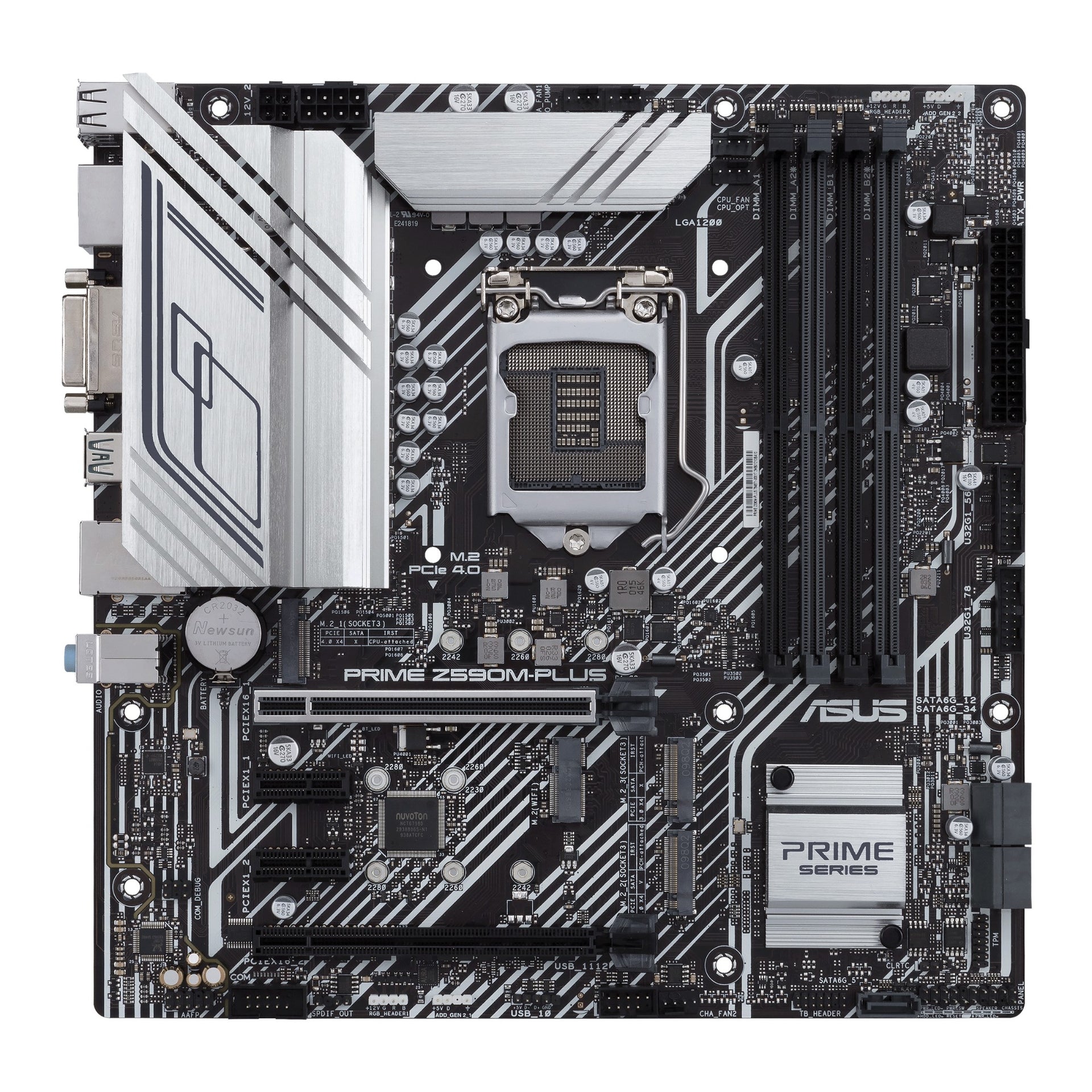 ASUS Prime series motherboards are expertly engineered to unleash the full potential of 10th and 11th Generation Intel® Core™ processors. Boasting a robust power design, comprehensive cooling solutions and intelligent tuning options, Prime Z590M-PLUS provides daily users and DIY PC builders a range of performance tuning options via intuitive software and firmware features. Tune It Your Way Comprehensive controls form the foundation of the ASUS Prime series. The Prime Z590 motherboard packs flexible tools to tune every aspect of your system, enabling performance tweaks to perfectly match the way you work, to maximize productivity. UEFI BIOS The renowned ASUS UEFI BIOS provides everything you need to configure, tweak and tune your system. It offers intelligently simplified options for PC DIY beginners, as well as comprehensive features for seasoned veterans. Advanced Tuning for Serious Tweakers An intuitive Advanced mode offered via the UEFI lets you take complete control. A built-in search feature makes it easy to find options, and various advanced functions let you intelligently make nuanced adjustments so you can dial in performance just the way you want. Search Function Quickly and easily find the option or setting you need. ASUS User Profile Port configuration settings between different BIOS versions or share them with friends. Quick and Simple Setup EZ mode displays vital settings and stats and also offers guided wizards, drag-and-drop functionality, and one-click application of important settings — all to help you get your rig up and running in no time. Intuitive Graphical Fan Control Fine-tune individual fan settings simply by dragging a curve with the mouse. EZ XMP Improve DRAM performance with one click. Aura On/Off Mode (Stealth) Easily enable or disable Aura RGB lighting or every onboard LED, for a subdued aesthetic touch. Cool to the Core Prime Z590 series is engineered with multiple onboard heatsinks and an array of hybrid fan headers to ensure your rig stays cool and stable under intense workloads. VRM Heatsinks and Thermal Pads Two massive VRM heatsinks and thermal pads improve heat transfer from the MOSFETs and chokes for better cooling performance. Cooler by Design Prime Z590 series features comprehensive cooling controls that are configurable via Fan Xpert 4 software or via the UEFI BIOS. Multiple Temperature Sources Each header can dynamically reference three thermal sensors. Fan Xpert 4 allows you to map the temperature of supported ASUS graphics cards to optimize cooling for GPU- and CPU-intensive tasks. AIO Pump Header A dedicated PWM/DC header for self-contained water-cooling setups. Smart Protection A dedicated integrated circuit protects each fan header from overheating and overcurrent. 4-Pin PWM/DC Fan Each onboard header supports auto-detection of PWM or DC fans. Build on a Solid Foundation Prime Z590 series is built to handle the additional cores and increased bandwidth of 11th Generation Intel® Core™ processors. ASUS Z590 motherboards provide all the fundamentals to boost daily productivity, so your system will be ready for action with stable power, intuitive cooling and flexible transfer options. Robust Power Design Stable power is essential to extract every last bit of performance out of 11th Generation Intel® Core™ processors. Prime Z590M-PLUS is geared to cater to the demands of these high-core count CPUs. ProCool Connector Proprietary connector augment the motherboard's link to the PSU with 8-pin connector that pass 12 volts of power directly to the processors. 8-pin connector features solid pins that can handle more current than hollow-pin connector. 8+1 DrMOS Power Stages A VRM with 8+1 DrMOS power stages delivers the power and efficiency that the latest Intel processors demand. ASUS OptiMem II Revisions to the motherboard’s trace routing provide the latest Intel processors with unrestricted access to memory bandwidth. ASUS OptiMem II technology carefully maps memory signal pathways across different PCB layers to reduce vias and adds shielding zones that significantly reduce crosstalk. Benefits of ASUS OptiMem II: - Improved memory stability and compatibility - Allows lower memory latencies at equivalent voltages - Improved memory frequency margin Three M.2 slots (up to 64 Gbps) Prime Z590M-PLUS offers a total of three M.2 slots, with one slot supporting data-transfer speeds of up to 64 Gbps via PCI Express® 4.0, enabling quicker boot-up and app load times with OS or application drives. PCIe® 4.0 Slot ASUS Z590 motherboards are designed specifically for 11th Generation Intel® Core™ CPUs and offer PCIe® 4.0 connectivity for the latest GPUs. The wide bandwidth and superfast transmission speeds allow you to create feature-rich builds that can handle high loads effortlessly. USB 3.2 Gen 2x2 Type-C® Numerous USB ports support high-end rigs loaded with peripherals, including one rear USB Type-C® connector with fast USB 3.2 Gen 2x2 for transmission speeds of up to 20 Gbps. Thunderbolt™ 4 header Support Prime Z590M-PLUS features Thunderbolt™ 4 support via an on-board header. With the latest Intel-certified ASUS TunderboltEX 4 add-on card, it can enable bi-directional speeds of up to 40 Gbps on a single cable. Additionally, this card has a daisy-chain function for multi-screen connection and supports up to an 8K resolution display. It can also provide up to 100 watts of power to fast-charge devices. Intel® 1Gb Ethernet Intel Ethernet Connection I219-V reduces CPU overhead and offers exceptionally high TCP and UDP throughput for faster, smoother data transfer. M.2 Slot (Key E) Prime Z590M-PLUS motherboard comes along with a M.2 Slot (Key E) which can support type 2230 Wi-Fi/BT and Intel® CNVi (Integrated Wi-Fi/BT) module. Small Details Make a Big Difference Prime Z590 series adds the nuanced details that improve every experience, from exclusive codecs that provide pristine audio quality to intuitive RGB lighting controls that let you cu