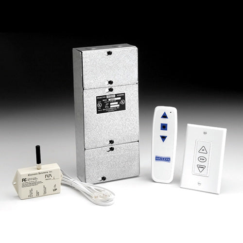 Controls any Da-Lite single motor electric screen and includes a radio frequency remote and receiver for operation up to 75 feet away.