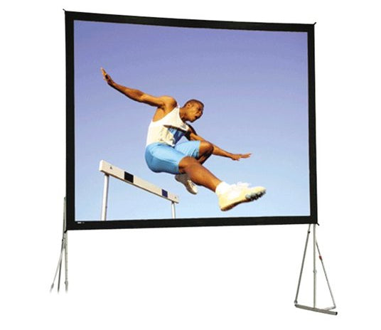 Heavy Duty Fast-Fold® Deluxe frame and legs are constructed of sturdy 3-1/2" wide by 1-1/4" thick aluminum tubing and feature easy release latches for simple, quick set up and tear down of the screen. Available with Da-Mat®, Da-Tex® (Rear), High Contrast Da-Tex® (Rear), Cinema Vision, Pearlescent, Dual Vision and Ultra Wide Angle (Rear), all Heavy Duty Fast-Fold® Deluxe surfaces are interchangeable with Fast-Fold® Truss surfaces for easy substitution. All viewing surfaces up to 16' high will be seamless. Complete screen also includes a rugged carrying case with wheels and is available in sizes from 7' x 9' up to 16' x 27'6". The Heavy Duty Fast-Fold® Deluxe with Da-Mat® fabric is standard with a foldable black backed material. This exclusive feature allows for the portability of a Fast-Fold® screen with the superior image quality and opacity of a black backed material.