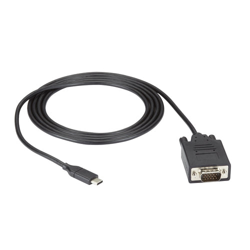 Black Box All-in-One USB Type-C to VGA adapter cable allows you to connect your laptop, tablet, smartphone, or another device to a VGA monitor, projector, or display. Utilizing the USB-C or Thunderbolt 3 port on your source device, video content is seamlessly transmitted using DisplayPort 1.2 Alternate Mode technology; no software or drivers are required. So whether you are working at the office or home, taking your device on the go to a customer site or a trade show, or just streaming shows on your monitor at home, you can easily display your content where you want it.
