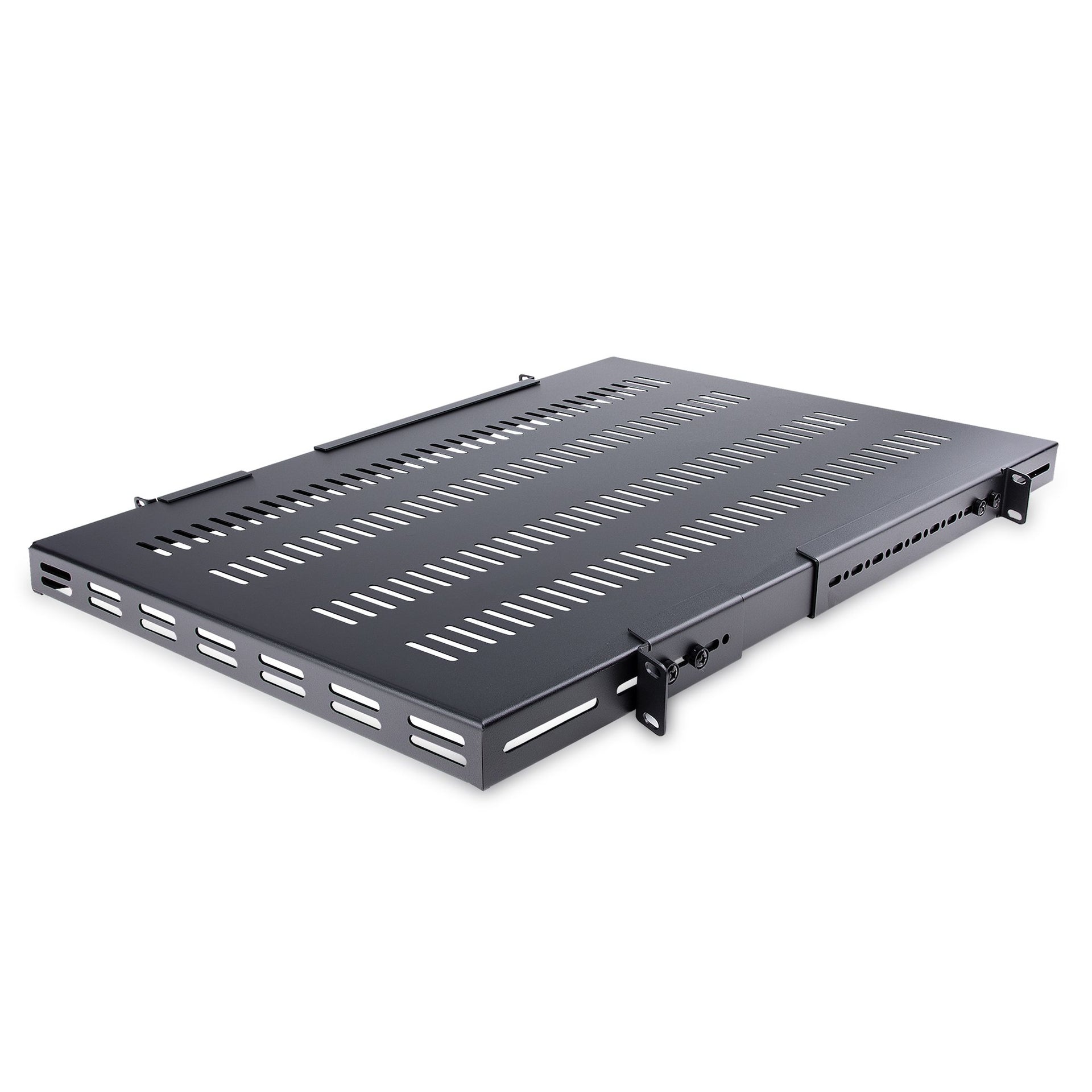 Add an adjustable depth vented shelf into almost any 4-Post server rack or cabinetThe ADJSHELFHDV2 1U 4-Post Adjustable Heavy Duty Vented Rack Mount Shelf lets you add a high-capacity, adjustable 1U shelf to virtually any standard 19-inch 4-post server rack or cabinet.This heavy duty rackmount shelf can be adjusted from 19.5in to 38in (mounting depth) to fit your rack, while the vented design improves air flow and help to lower temperatures in the rack. Constructed using 1.2mm SPCC commercial grade cold-rolled steel, providing the ability to hold up to 150kg (330lbs) of equipment - a durable solution for storing large, non-rackmount pieces of equipment, heavy tools or peripherals in your rack or cabinet.Backed by a StarTech.com Lifetime warranty.The StarTech.com Advantage