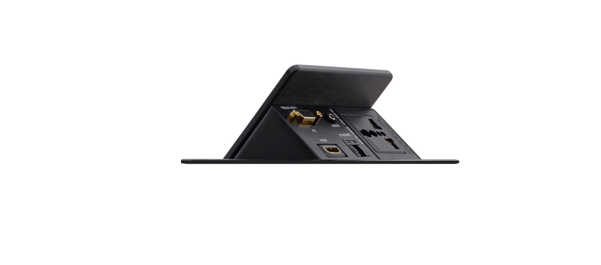 Kramer's TBUS-201xl provides an extremely simple, affordable and elegant single-push pop-up multi-connection boardroom solution. By pressing down gently on the lid, the unit opens and closes pneumatically. TBUS-201xl is fast and easy to install and flexible to configure. It customizes to your own needs and is intuitive to operate.