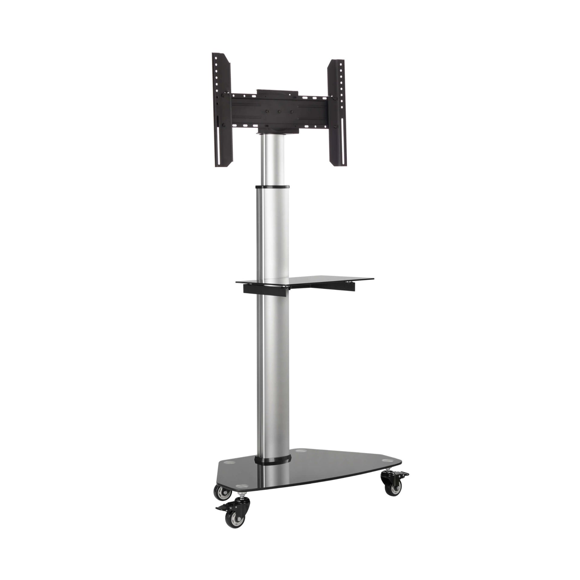 Move Your Monitor, TV or Interactive Whiteboard Wherever Your Audience Is This rugged rolling TV stand combines a height-adjustable display mount with the convenience of a mobile cart. Mount your curved- or flat-panel television, digital whiteboard or touchscreen monitor to the all-metal unit, and then roll it safely and smoothly from room to room. Exquisitely Designed in a Sleek, Modern Style The durable DMCS3770SG75 is constructed from heavy-duty steel and aluminum with an upscale black glass shelf and base. It helps you deliver your message in corporate settings, open-plan offices, modern waiting rooms and medical facilities. Comes Ready to Roll Wherever You Need to Go Three-inch swivel casters allow you to roll the DMCS3770SG75 into any office, conference room, huddle space or classroom best suited for cost-efficient resource sharing. Ease of movement allows collaborative workflow to happen in any location and maximizes usage to increase engagement, creativity and productivity. The casters lock into place to keep the stand securely in position while at rest. Raise and Lower the Screen to Find the Most Comfortable Viewing Angle The height-adjustable TV floor stand fits most displays, whiteboards and monitors from 37 to 70 inches. Its durable frame withstands the stress of repeated adjustments and supports up to 175 pounds (79.3 kgs.) You can raise or lower the height of the display from 65.7 to 84.6 inches above the floor. You can also rotate the screen to view the image in either landscape or portrait mode. Conveniently Place Peripherals and Manage Cables The durable black glass shelf and base hold audio/video and other components, such as laptops, projectors, webcams and Blu-ray players. Cables can be routed along the column to keep them hidden and avoid excessive clutter. VESA-Compliant Mounting Ensures Display Compatibility VESA (Video Electronics Standards Association) promotes uniformity in the video electronics industry by developing standards for TVs and monitors. For hassle-free display compatibility, this mount supports the following VESA mounting hole patterns: 100 x 100, 200 x 100, 300 x 100, 400 x 100, 200 x 200, 300 x 200, 300 x 300, 400 x 200, 400 x 300, 400 x 400 and 600 x 400.