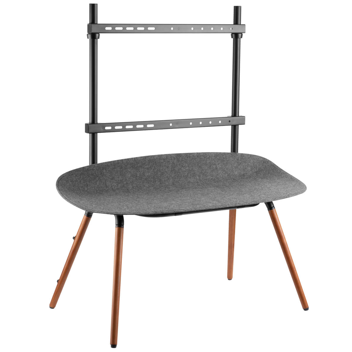 Set Up Your Digital Signage Wherever Your Audience Is This portable TV stand fits most flat-panel and curved-panel displays, whiteboards and monitors from 55 to 70 inches (140 to 178 centimeters). It’s easy to assemble with secure locking collars for convenient setup wherever foot traffic flows, such as classrooms, trade shows, lecture halls, offices, auditoriums, restaurants, bars and hotels. Durable Wood and Steel Frame Designed to Last The frame withstands the stress of repeated adjustments and supports up to 88 pounds (40 kilograms). An included safety strap prevents the mounted display from tipping. A felt shelf mounts in front to hold a laptop, webcam and other essential accessories. Built-In Cable Management Helps Eliminate Clutter Equipment cables route through clips on the stand’s legs to keep them organized and out of the way. Rubber pads are included to ensure your display remains level on an uneven surface. VESA-Compliant Mounting Ensures Display Compatibility VESA (Video Electronics Standards Association) promotes uniformity in the video electronics industry by developing standards for TVs and monitors. For hassle-free display compatibility, this mount supports the following VESA mounting hole patterns: 200 x 200, 300 x 200, 300 x 300, 400 x 200, 400 x 300, 400 x 400 and 600 x 400. All hardware is included.