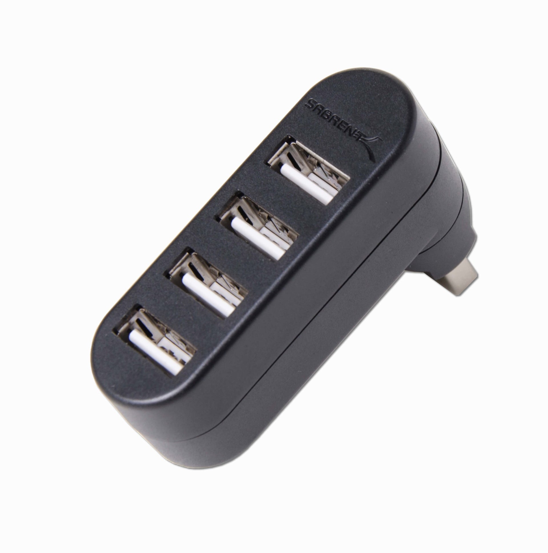 Add up to 4 devices quickly and easily with the Sabrent USB 2.0 Rotatable Hub. Great for newer notebooks that come with a limited number of ports. Maximize your time by obtaining access to plug in multiple USB devices instead of having to choose just one . Achieve full 480 Mbps on each port, or daisy-chain multiple hubs to a maximum of 127 devices. Fully backwards compatible with the USB 1.1 products.Please Note:For a stable connection, the devices connected to the 4 Port Hub must not exceed a combined current of 5 volts 500mAh. External hard-drives should be connected to an external power source. This 4 Port hub will not charge your devices, it will only sync them.