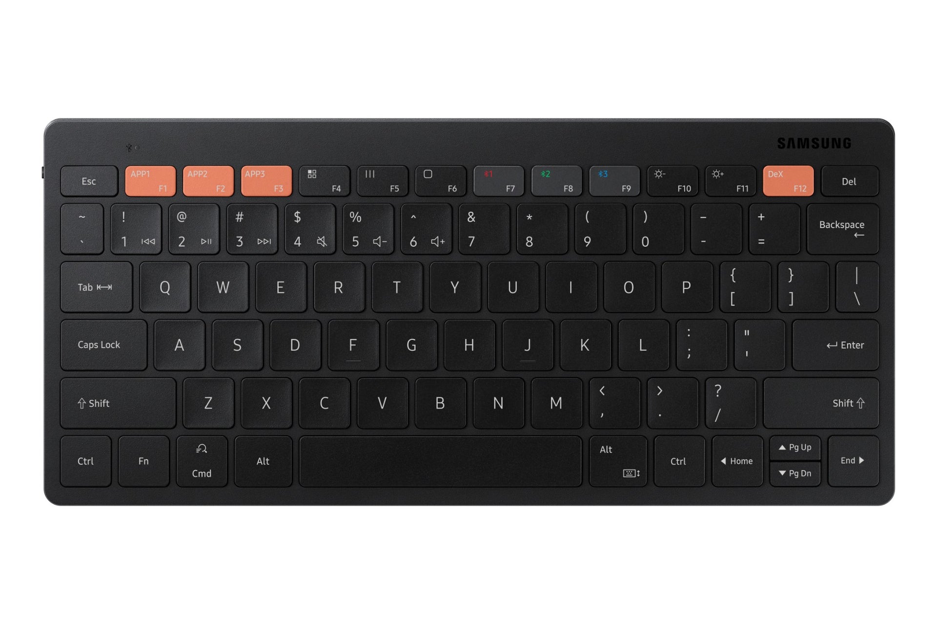 Pair multiple devices & switch with a click Connect it with up to three different devices at once. Enjoy wide compatibility and easy pairing, as a click is all you need to switch between smartphones, tablets, and other devices paired with the Samsung Smart Keyboard Trio 500. Enter into DeX for productivity By accessing DeX via the Samsung Smart Keyboard Trio 500, reaching a desktop-like performance and productivity becomes a reality you can manifest from anywhere. Work with multiple windows at once, efficiently respond to messages and emails on one screen, and achieve beyond the boundaries of devices. Assign custom Hot Keys to your favorite apps Have shortcuts to the apps that you use the most, and enjoy one-click access using 3 Hot Keys. Whether it's your favorite content streaming app or your most frequently used utility app, launching them is always a Hot Key away. Wireless keyboard to-go for when you're on the go Always be ready to achieve. Compact, slim, and tastefully designed yet packed with special functions for a boosted performance, the wirelessly connectable Samsung Smart Keyboard Trio 500 delivers a comfortable typing experience wherever you are.