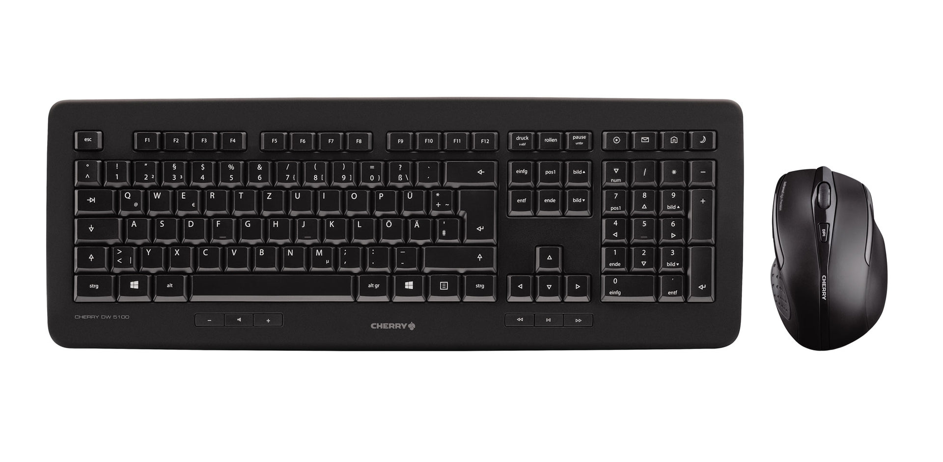 Wireless desktop set with abrasion-proof laser inscription - Durable, high quality professional keyboard with ergonomic 5-button mouse - Easy to install, requiring no technical knowledge - Battery status display in keyboard and mouse - Mouse has on/off switch for additional energy efficiency - Nano USB receiver: also ideal for permanent use with the notebook - Infrared sensor and adjustable resolution (1000/1750 dpi) - 2.4 GHz technology (range of up to 5 meters)