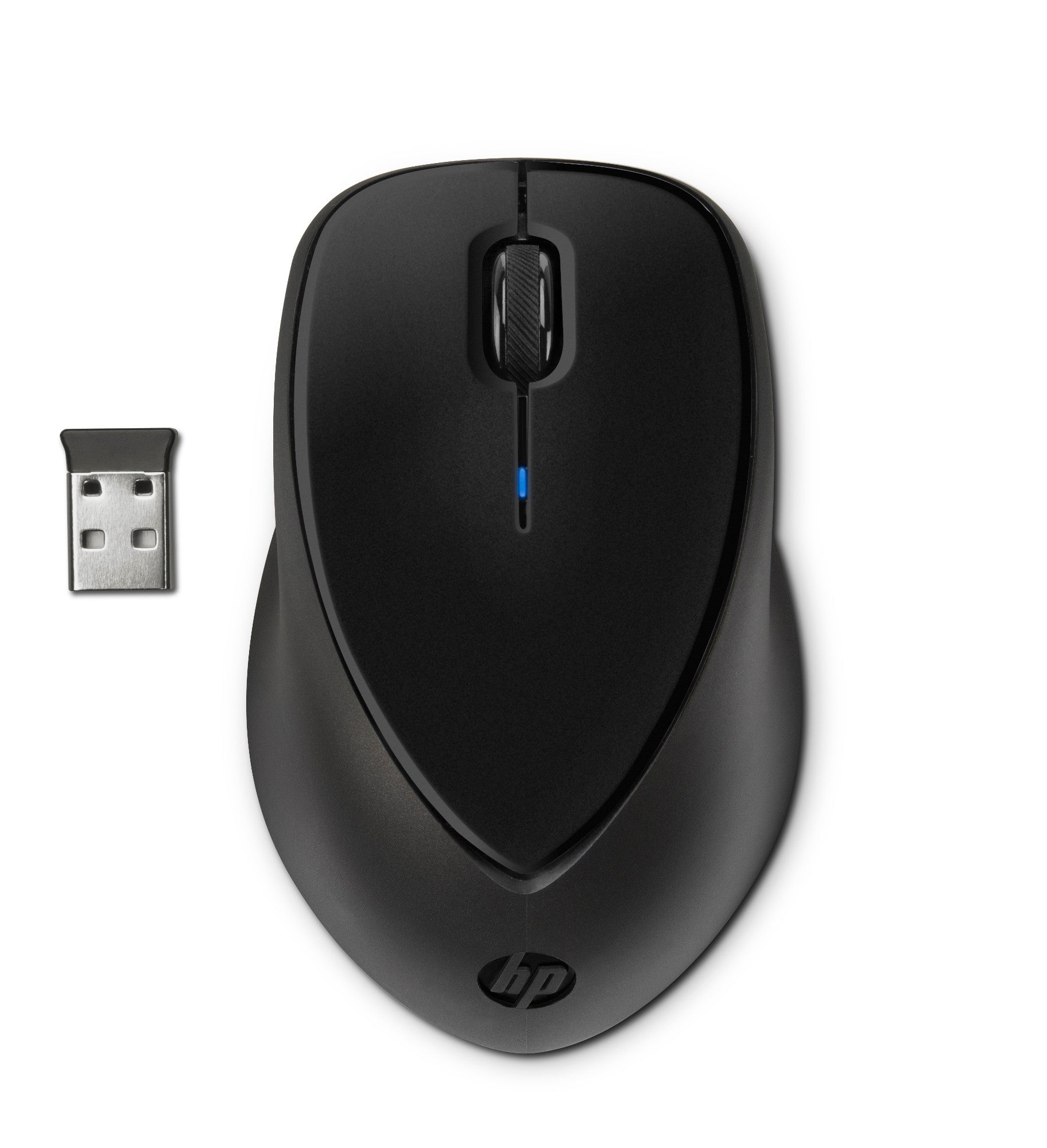 HP Comfort Grip Wireless Mouse. Device interface: RF Wireless, Scroll type: Wheel. Power source: Batteries. Product color: Black