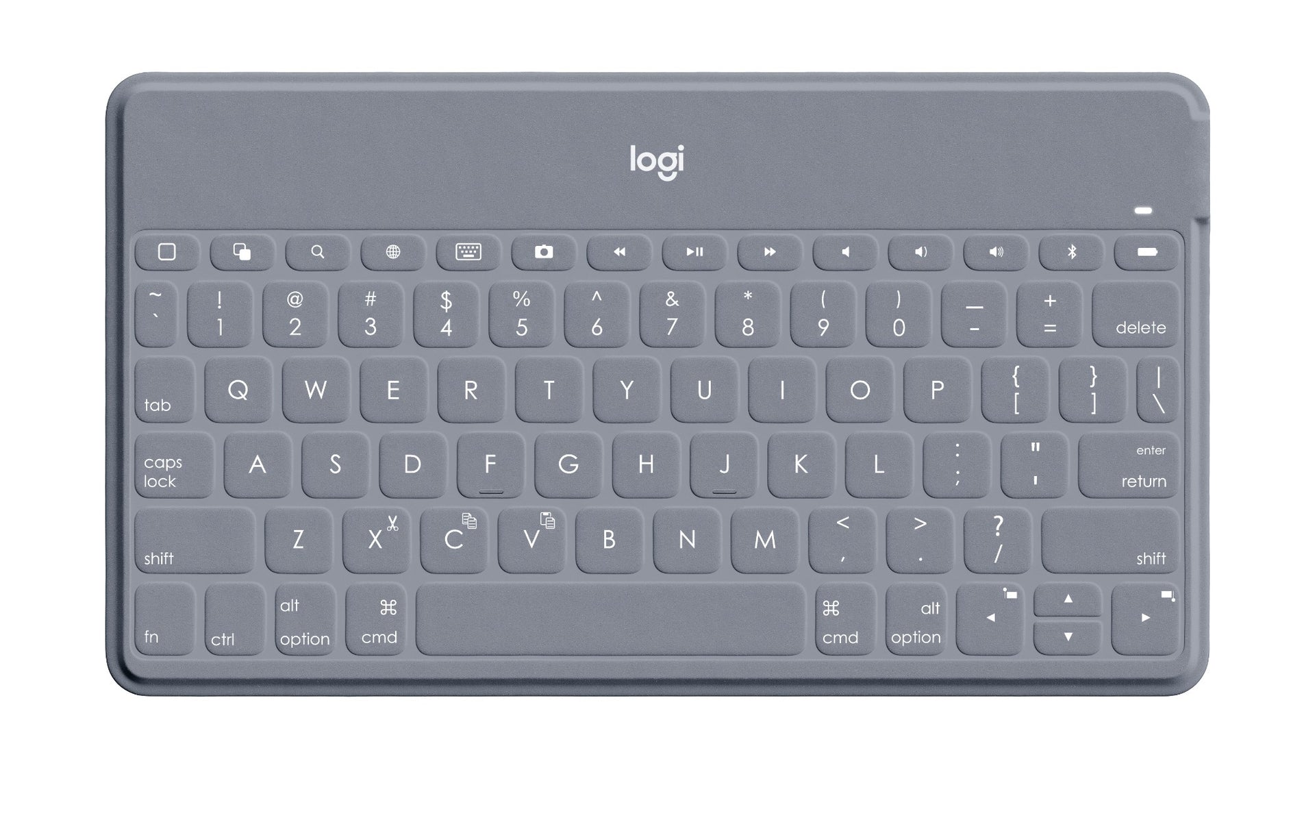 Type on your terms with Keys-To-Go, the super-slim, super-light Bluetooth® keyboard for iPhone®, iPad® and Apple TV® that fits anywhere and goes everywhere. The durable, spill-proof Keys-To-Go helps you escape the cramped on-screen keyboard and turn any space into a workspace whether you’re in the backyard, the kitchen, or the park. Keys-To-Go has comfortable, soft keys that type silently so you and people around you can focus without distractions. Plus, a full row of iOS® shortcut keys provide one-tap access to your most-used functions including volume and media controls.