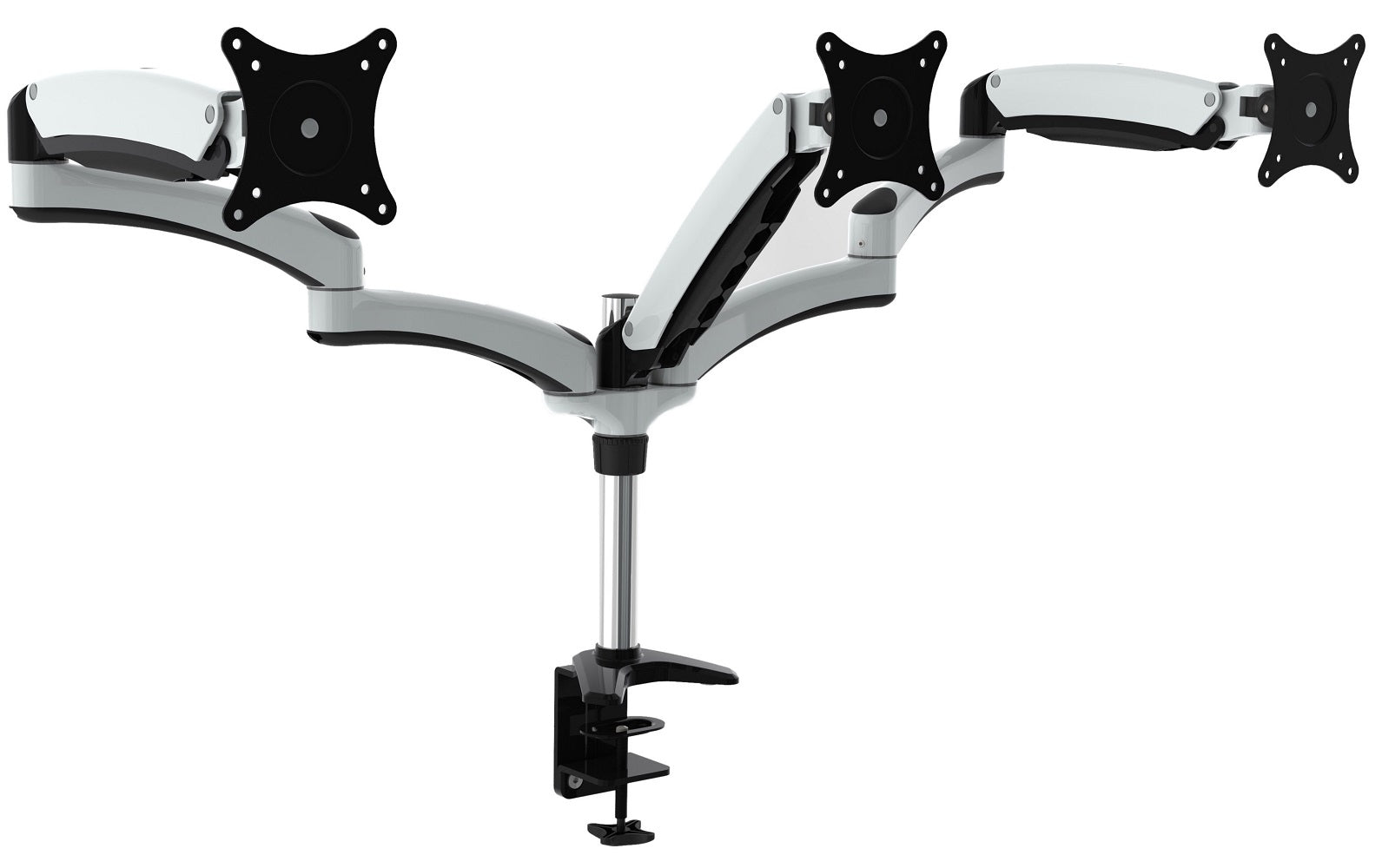 - Mount Three 15-28″ Flat or Curved Screen Monitors to a Desktop