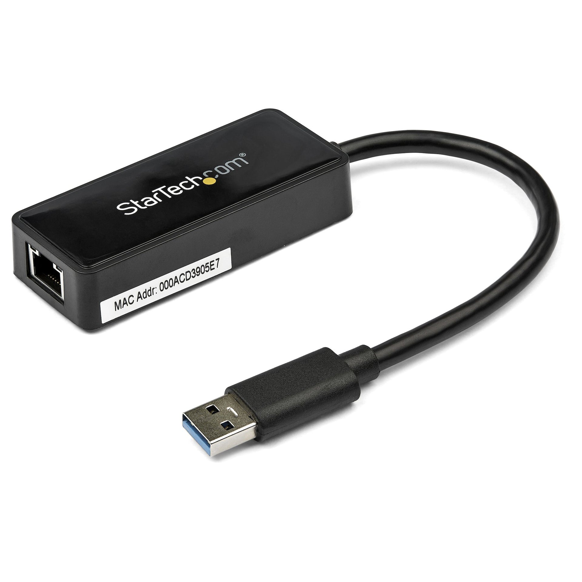 The USB31000SPTB USB 3.0 to Gigabit Ethernet Adapter lets you add a Gigabit network port to your laptop or Ultrabookâ„¢ computer through a USB 3.0 port, and features an integrated USB 3.0 pass-through port that keeps your USB port available for use with other peripherals. The RJ45 port supports 10/100/1000 Mbps Ethernet and is fully compatible with IEEE 802.3i/u/ab standards. The network adapter is the ideal laptop accessory for your Microsoft Surfaceâ„¢ Pro 4, Surface Pro 3, Surface 3, Surface Pro 2 or Surface Book. An ideal replacement LAN adapter or laptop accessory, this compact USB 3.0 NIC leverages the 5 Gbps speed of USB 3.0 to provide full gigabit bandwidth and also offers backward compatibility with USB 2.0 systems (speed limited by USB bus). The adapter supports features such as IPv4/IPv6 packet Checksum Offload Engine (COE) and TCP large send offload to reduce the load on your CPU. Jumbo Frames, full-duplex operation with 802.3x flow control and VLAN tagging are also supported, making this an efficient and full-featured USB network adapter. The StarTech.com Advantage - Full Gigabit bandwidth support through a USB 3.0 host connection - Conserve available USB 3.0 ports with USB pass-through - Take the adapter anywhere with a portable, USB-powered design