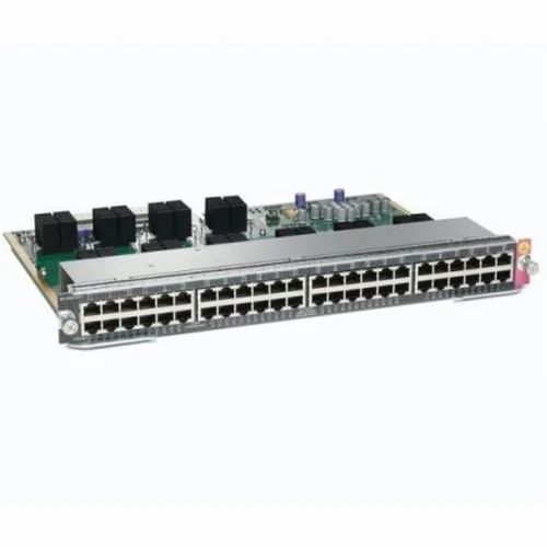 Cisco® Catalyst® 4500 Series Switches enable borderless unified wired and wireless networks, providing high-performance, mobile, and secure user experiences through Layer 2-4 switching. Enabling security, mobility, application performance, video, and energy savings over your network infrastructure, the Cisco Catalyst 4500 Switch supports resiliency, virtualization, and automation, further improving the ease of network use. Cisco Catalyst 4500 Series Switches provide borderless performance, scalability, and services with reduced total cost of ownership (TCO) and superior investment protection.The Cisco Catalyst 4500 Switch delivers predictable and scalable high performance, with advanced dynamic quality of service (QoS) capabilities and configuration flexibility for deploying borderless networks. Integrated resiliency features in both hardware and software maximize network availability, helping to ensure workforce productivity, profitability, and customer success. Its centralized, innovative, and flexible system design helps ensure smooth migration to wire-speed IPv6 and 10 Gigabit Ethernet (GE). The forward and backward compatibility between generations of the Cisco Catalyst 4500 Series extends deployment life, providing exceptional investment protection, while reducing the (TCO).The Cisco Catalyst 4500E Series is a high-performance, next-generation extension to the Cisco Catalyst 4500 Series. The new E-Series is composed of the Cisco Catalyst 4500E Series supervisor engines, E-Series line cards, and E-Series chassis, which are designed for a high-performance, mobile, and secure user experience with superior backward and forward compatibility, delivering exceptional investment protection for organizations of all sizes.Cisco Catalyst 4500E Series and Classic Line CardsThe Cisco Catalyst 4500 Series offers two classes of line cards: classic and E-Series. Classic line cards provide 6 gigabits of switching capacity per slot. E-Series line cards provide increased switching capacity per slot. This increase in per-slot switching capacity with the E-Series line cards requires the Cisco Catalyst 4500E Series chassis and the Cisco Catalyst 4500E Series Supervisor. Two types of E-Series line cards are available based on the per-slot switching capacity. E-Series line cards numbered 47xx operate at 48 gigabits per slot, while E-Series line cards numbered 46xx operate at 24 gigabits per slot. Classic line cards may be deployed in both classic and E‑Series chassis with either classic Cisco Catalyst 4500 Series supervisor engines or with the Cisco Catalyst 4500E Series Supervisor Engine. With the E-Series supervisor engine, the per-slot switching capacity for classic line cards remains at 6 gigabits per slot. However, because of the centralized switching architecture of the Cisco Catalyst 4500, the classic line cards will adopt all of the new E-Series supervisor engine features such as eight queues per port, dynamic QoS, and hardware-based IPv6 routing. For more feature details, refer to the E-Series supervisor engine data sheet. Classic line cards and E-Series line cards may be mixed and matched within a Cisco Catalyst 4500E Series chassis with no performance degradation: classic line cards will operate at 6 gigabits per slot, and E-Series line cards operate at either 48 gigabits per slot or 24 gigabits per slot based on whether they belong to the 47xx or 46xx family of line cards. Table 1 summarizes the chassis and supervisor support for both classic and E-Series line cards.- 24 gigabits per-slot capacity- 48 ports- 10/100/1000 module (RJ-45)- Cisco IOS Software Release 12.2(40)SG or later- IEEE 802.3af/at and Cisco prestandard PoE, IEEE 802.3x flow control- Bandwidth is allocated across eight 6-port groups, providing 3 Gbps per port group (2:1)- L2-4 Jumbo Frame support (up to 9216 bytes)- Capable of up to 30W of inline power per port on up to 24 ports simultaneously- Enterprise and commercial: designed to power next-generation IP phones, wireless base stations, video cameras, and other PoE devices- Campus and branch applications requiring enhanced performance for large file transfers and network backups