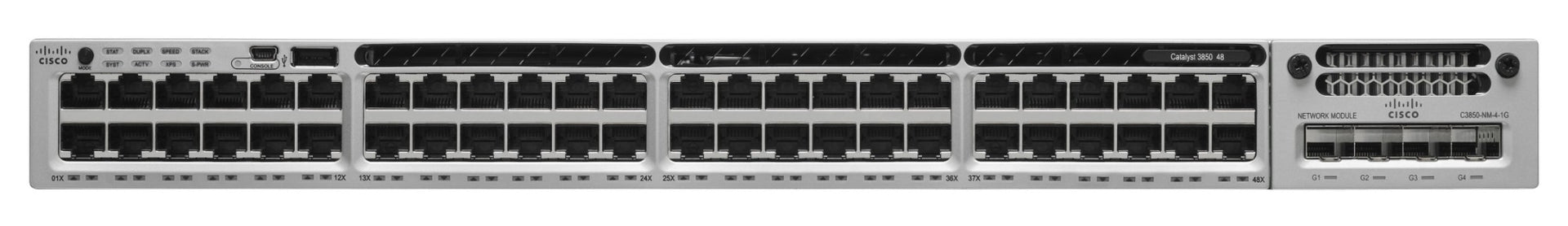 Catalyst 3850 Enables Unified AccessCisco Unified Access is the convergence of the wired and wireless networks into one physical infrastructure with greater intelligence, simplicity, performance, and open interfaces. One network starts with Cisco Catalyst 3850 switches, which combine wired and wireless by supporting wireless tunnel termination and full wireless LAN controller functionality.Best-in-Class Stackable Access SwitchThe Cisco Catalyst 3850 Switch currently offers the industry's highest 480 Gbps stacking bandwidth to meet network demand, including gigabit desktop and 802.11ac wireless. The switch delivers advanced capabilities such as a high-performance 24/48 port GE switch, 480 G stacking, Power over Ethernet Plus, StackPower and Flexible NetFlow on all ports.Converged Wired and Wireless AccessThe Cisco Catalyst 3850 Switch brings Cisco IOS excellence to wireless by extending wired infrastructure features, resiliency, granular QoS, and scalability. It provides built-in wireless controller capabilities with 40 G wireless throughput, support for 50 access points and 2000 wireless clients per switch or stack, and support for 802.11ac.Distributed Intelligent ServicesThe Cisco Catalyst 3850 Switch delivers common intelligent services across wired and wireless for security and policy, application visibility and control, network resiliency, smart operations, and more. The switch can enable multi-level QoS based on granular information such as SSID, client, radio, application, and fair share policies for wireless.Foundation for Cisco Open Network EnvironmentThe heart of Cisco Catalyst 3850 is the new ASIC with programmability for future features and intelligence with investment protection. The new ASIC provides a foundation for converged APIs across wired and wireless, software-defined networking (SDN) support, and Cisco One Platform Kit (OnePK).