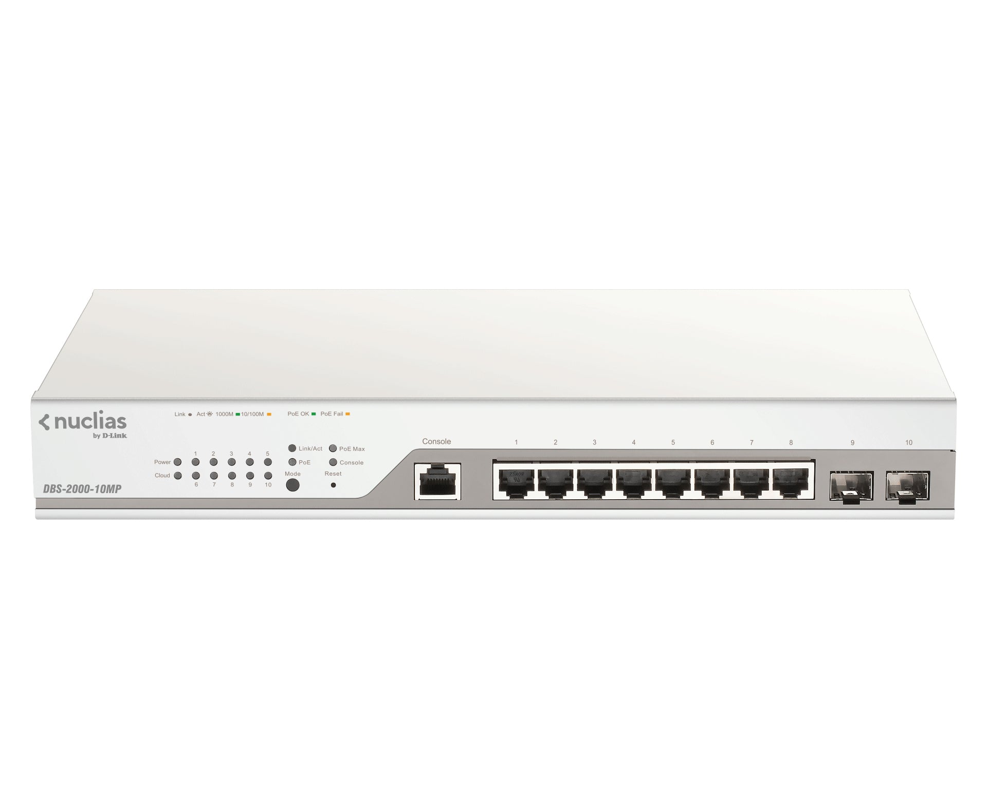 Cloud Networking, Refreshed The DBS-2000 series of switches is part of the Nuclias Cloud solution – D-Link’s complete Cloud-Managed Networking solution for Small-to-Medium Businesses (SMBs), designed to make the ownership and administration of your IT infrastructure as simple and hassle-free as possible. Management Over the Cloud DBS-2000 is a series of Smart Managed Switches, manageable via the Nuclias Cloud Web Portal through any compatible online PC or Tablet. Connectivity with the Nuclias Cloud platform is guaranteed, with a 99.9% Service-Level-Agreement (SLA), and operation will continue even if the Cloud connection fails. Easy Troubleshooting The DBS-2000 Series features Cable Diagnostics and Per Port Traffic Packet Counters to help network admins find & solve network problems. Cable Diagnostics enables quick examination of cable quality, recognition of cable type, and detection of cable errors, with the Per-Port Traffic Packet Counter helping to further isolate problems. Advanced Security Features The DBS-2000 series utilizes the Nuclias Cloud Web Portal interface, giving administrators an easy way to manage Layer-2 features, such as VLANs, Spanning Tree Protocol (STP), and 802.3ad Link Aggregation (static). With powerful security features, including IGMP snooping, Static MAC, and end-to-end encryption (WPA/WPA2/WPA3), these Cloud switches are a versatile solution for deployments that require easy configuration, without added complexities. Full PoE Support Select models in the DBS-2000 Series support Power over Ethernet (PoE) for copper access ports. Power over Ethernet greatly simplifies the installation of PoE-enabled devices such as VoIP phones and IP cameras in remote locations with no immediate access to a power outlet.