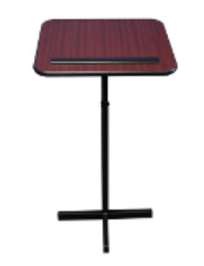 - No tool assembly- 16" x 20" angled reading table surface- Padded paper stop- Black T-MoldingNo tool assembly - Adjustable lectern stand provides generous 16" x 20" angled reading table surface with padded paper stop & black T-molding. Black steel base with height adjustment from 30" to 44". Specify wood color of Medium Oak, Mahogany, Walnut or Maple.