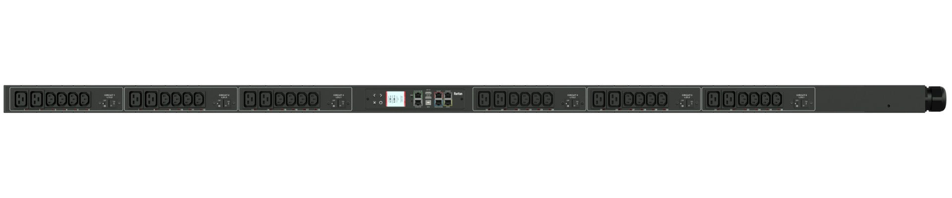 Tender Text/Bid Submittal TextMonitored and switched rack power distribution unit (0U [vertical], 14.4kVA, 36 outlets). INPUT: 208v (3-phase DELTA), 50a - CS8365C plug (3P4W); OUTPUT: 24@ C13, 12@ C19 outlets; on 6@ 2-pole, 20a Overcurrent Protectors; FEATURES: Billing-Grade (+/- 1%) Energy Metering [kW, kVA, V, A, Power Factor] - per inlet, per breaker/fuse, per outlet; Remote Outlet Switching (Bi-State Latching Relays); Color, matrix LCD display : Voltage, current, or active power (per line, per breaker, or per receptacle / outlet); Alarms; Configuration information (name, ratings, IP / Networking information). Auto-flip orientation; Field-Replaceable, hot-swappable network module with 536MHz processor, 16MB SPI Flash, and 64MB DDR2 RAM; Gigabit(10/100/1000) Ethernet port. Secondary, redundant Ethernet port. Redundant power sharing between network modules.Remote network monitoring via HTML, JSON-RPC, SSH, Telnet, MODBUS/TCP, and SNMPv3. Environmental monitoring [temp/humidity] capable ñ up to 32 sensors. Individual outlet numbers labeled on chassis. Automated deployment via TFTP, DHCP/PXE, SSH(CLI), or USB Flash Drives. WiFi Capable. USB Webcam Capable. iPad/iPhone/Android App. Tri-color status LED per receptacle. Breaker metering and alarming (0V detection). Max Dimensions 59mm x 80mm x 1981mm (2.3in x 3.1in x 78.0in). Max Weight 13.8 kg. Maximum ambient temperature 60C at full load.