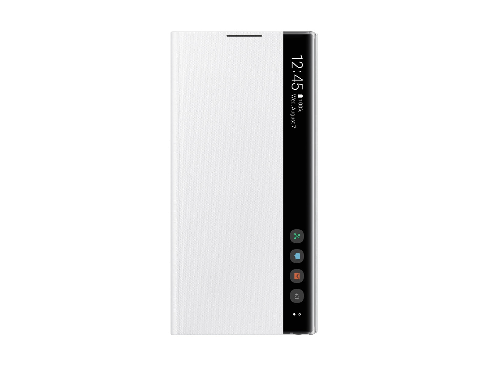 The Galaxy Note10 S-View Flip Cover†enables you to see and interact with your phone screen through the front of the case. Respond to incoming phone calls, alarms and events even while the cover is closed. With a lower profile design, you can show off the side screen whether your cover is open or closed. Slimmer design Comfortably enjoy the view of the Infinity Display with slimmer profile. Patterned front screen prevents diffused reflection for superior viewing. Control with ease It's simple to answer calls, control your music, and more—all without opening the cover. Tap and swipe as needed, and even read important information like time, date, and battery level on the new vertical clear interface. Designed to protect Shield your phone from all sides with this shell-type design. It securely holds your phone to guard the back, while the attached flap covers the front to help prevent screen scratches when it's in your bag or pocket.