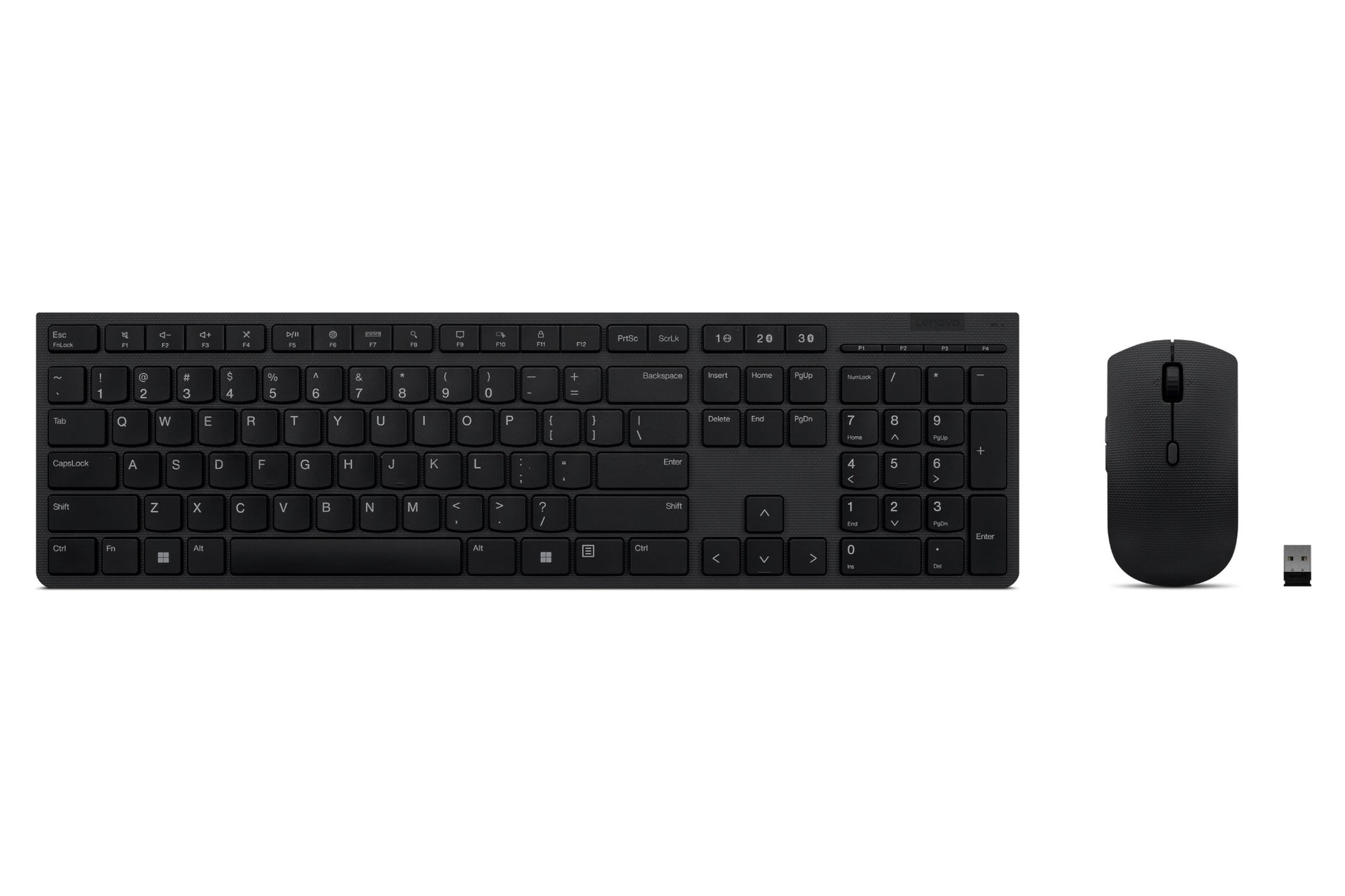 The Lenovo Professional Wireless Rechargeable Combo Keyboard and Mouse is a revolution in productivity and design. Its full-size keyboard features scissor switches that create an elevated typing experience. Its mouse, marvelously crafted from bio-rubber, keeps you comfortable all day and is equipped with an impressive 4,000 DPI sensor. Plus, both the keyboard and mouse are made from eco-friendly 65% recycled material that protects the environment.