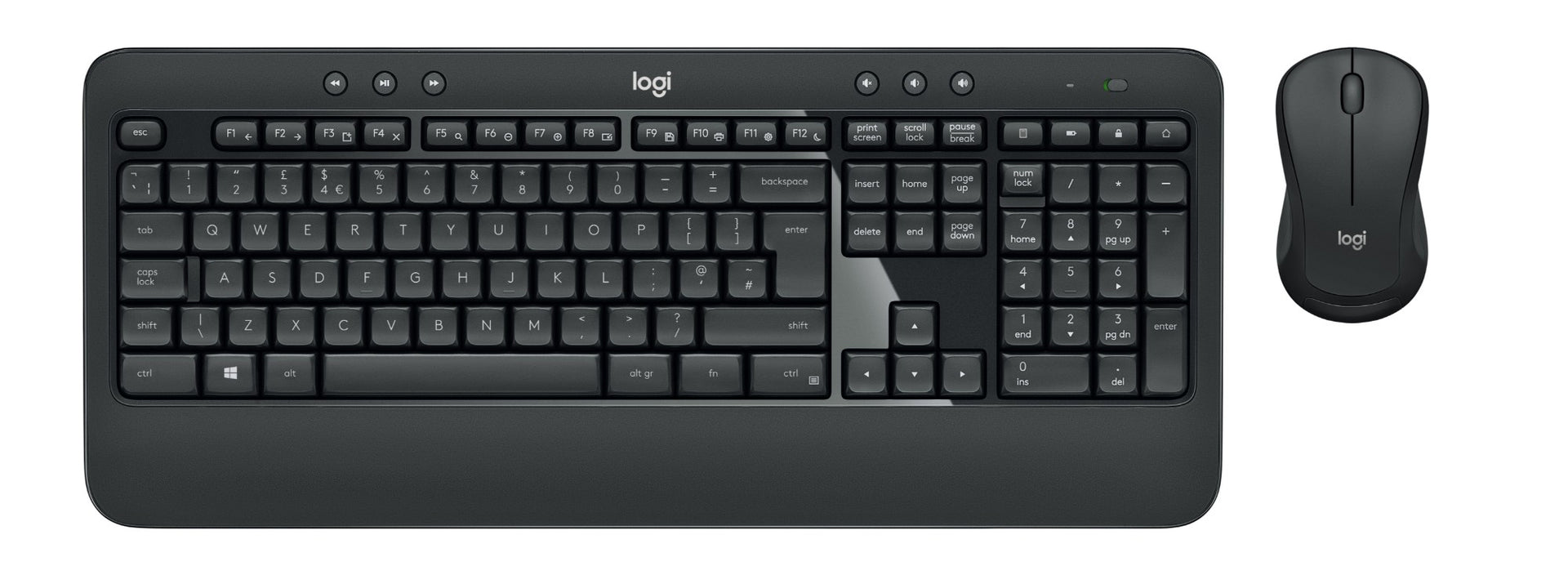 MK540 Advanced is an instantly familiar wireless keyboard and mouse combo built for precision, comfort and reliability. The full-size keyboard features a familiar key shape, size, and feeling – optimized for precision and noise reduction. The palmrest and adjustable tilt legs keep you comfortable for long stretches and the contoured mouse is designed to fit perfectly into either palm. Plug and play your keyboard and mouse with one tiny USB receiver with Logitech Unifying™ technology. You’ll get a reliable – and encrypted – wireless connection up to 10 meters away with virtually no delays or dropouts. Your keyboard won’t require new batteries for 36 months and your mouse stays powered for 18 months.*