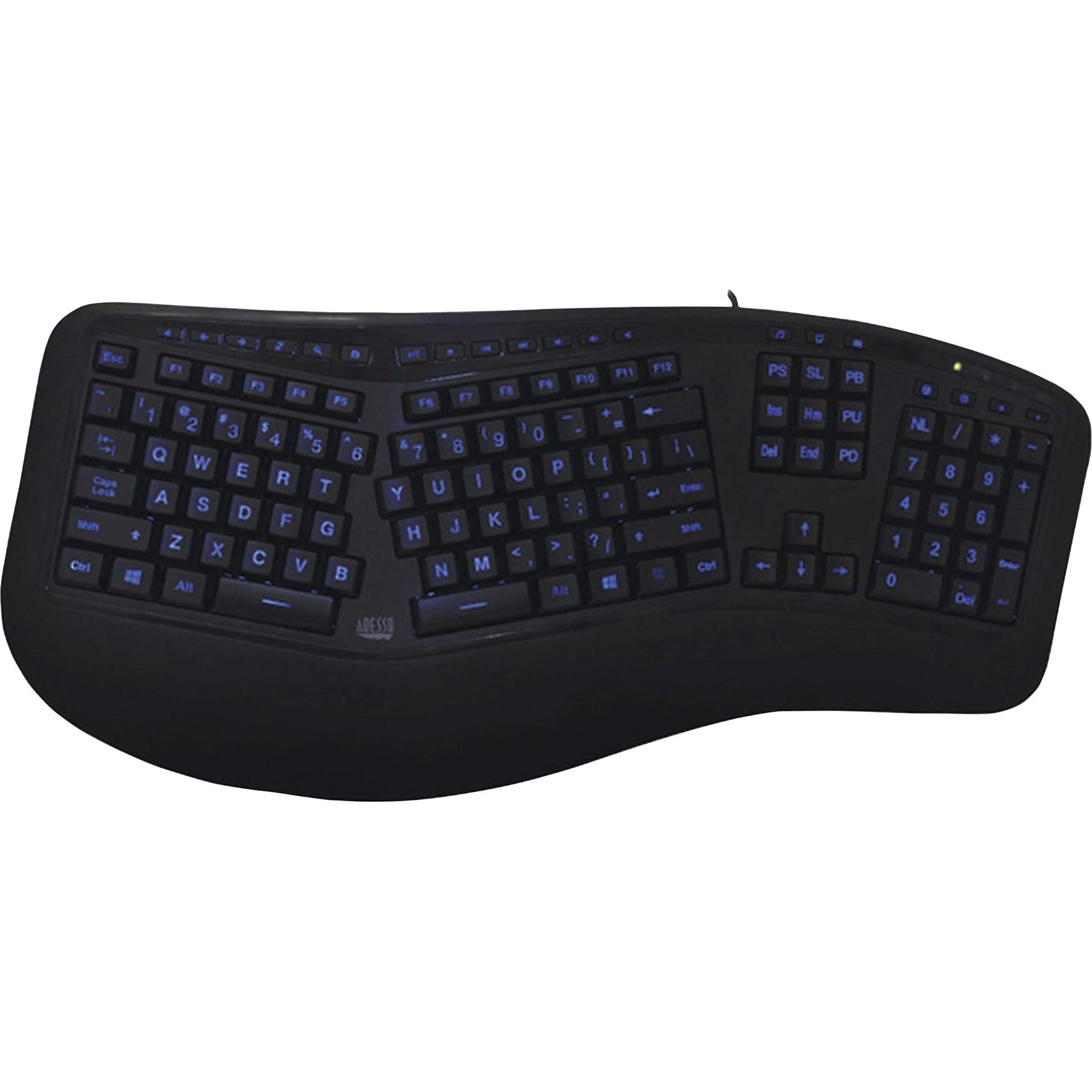 - AKB-150EB - Adesso TRU-FORM 150 - 3-COLOR ILLUMINATED ERGONOMIC KEYBOARD