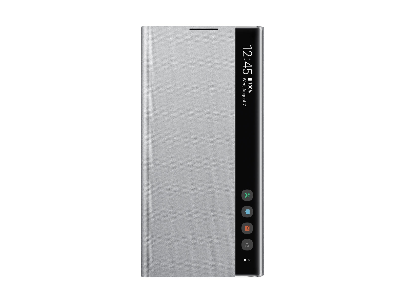 The Galaxy Note10+ S-View Flip Cover†enables you to see and interact with your phone screen through the front of the case. Respond to incoming phone calls, alarms and events even while the cover is closed. With a lower profile design, you can show off the side screen whether your cover is open or closed. Slimmer design Comfortably enjoy the view of the Infinity Display with slimmer profile. Patterned front screen prevents diffused reflection for superior viewing. Control with ease It's simple to answer calls, control your music, and more—all without opening the cover. Tap and swipe as needed, and even read important information like time, date, and battery level on the new vertical clear interface. Designed to protect Shield your phone from all sides with this shell-type design. It securely holds your phone to guard the back, while the attached flap covers the front to help prevent screen scratches when it's in your bag or pocket.