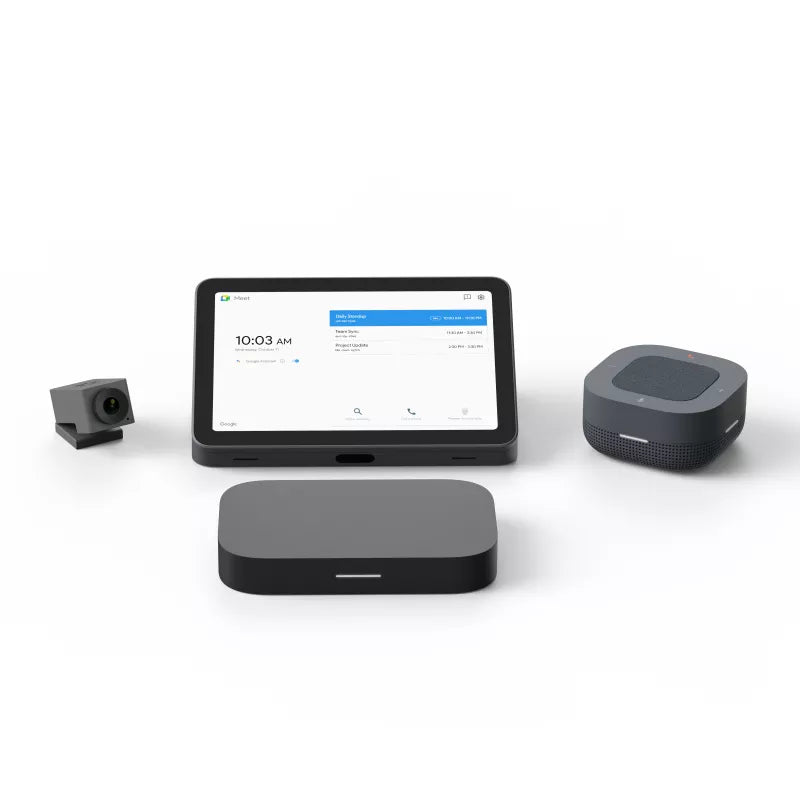ASUS – Google Meet Hardware ASUS – Google Meet hardware is the latest smart one-touch video-conferencing solution with HD visuals for Google Meet. Three ASUS – Google Meet hardware kits are available to suit any meeting room and provide an effective solution for organizations of any size. The hardware kits feature the compact ASUS – Google Meet compute system powered by an Intel® Core™ i7 processor and each offers a revolutionary magnetic chassis for easy installation. To ensure long-term reliability under prolonged use, the newly designed Meet compute system is built and tested to exceed industry requirements. The kits include a Speakermic for 360° sound, a touchscreen control panel or remote control and a UHD camera.* *Large Room Kits are not supplied with a camera. A PTZ Pro 2 can be purchased separately. ASUS – Google Meet Compute System The ASUS – Google Meet compute system is the hub of the ASUS – Google Meet hardware video-conferencing solution. The device is powered by an Intel® Core™ i7 processor and has extensive connectivity that supports multiple 4K UHD displays simultaneously. The ASUS – Google Meet compute system provides users with eight years of auto-update support*. The compute system is designed to be slim enough to fit discreetly behind any display and the magnetic chassis, wall mounting kit and stand make it easy to install anywhere. All I/O ports are on one side of the device, simplifying setup and cable management. To ensure long-term reliability and stability, the ASUS – Google Meet compute system is tested to exceed industry requirements ensuring users have a product that they can consistently depend on to conduct business. *The auto-update support period is determined by Google, and may be subject to change without prior notice. Designed for Enterprise Grade Reliability and Performance - Designed, manufactured and rigorously tested for enhanced performance and longevity - Compact, magnetic chassis for easy installation - Wall mount and stand included - Simple cable management and easy access with single-sided I/O ports Tuned for Google Meet - ChromeOS optimized for Google Meet with automatic updates - Enhanced security with verified boot and on-device encryption - Automatic firmware updates for qualified peripherals Multiple Mount Options for Easy Installation The ASUS – Google Meet Compute system comes with a magnetic stand and wall mount for easy installation. The magnetic stand allows the device to be mounted vertically and the magnetic wall mounts enable it to be mounted on walls or underneath desks. It can also be placed on any flat surface. All I/O ports are located on the rear of the ASUS – Google Meet compute system for easy cable management. Magnetic Stand Simply align the notch on the stand with the slot on the ASUS – Google Meet compute system Magnetic Wall Mount The magnetic wall mount can easily be installed under a desk, on a wall or behind a display using the included screws. Once installed, the ASUS – Google Meet System can be attached to the mount magnetically. UHD camera - Optimized for Google Meet to ensure the best possible video conferencing experience - 120° ultra-wide field of view - Balanced wide-angle distortion correction - 4K image sensor supporting digital zoom - Aluminum unibody construction - Embedded mounting hinge and tripod mount *The 4K camera sensor outputs 720p video, allowing for 4X digital zoom without any loss in quality Speakermic - 360° voice input and audio output from up to 20 feet (6 meters) away - Advanced active noise suppression and echo cancellation for crystal-clear audio - Daisy chain up to five Speakermics for any meeting room size - Compatible with Google Assistant Touchscreen Control Panel - Join, record or present with a single tap - Anti-glare 10.1-inch capacitive touchscreen - 170° viewing angle - International keyboard support - HDMI input for presenting locally or on a Meet - Easy to assemble with color-coded cables Remote Control - Join and exit meetings with the simple press of a button - Embedded keyboard eliminates the need for external keyboard - Easily adjust volume from anywhere in the meeting room *Display is not included in starter kit. Qualified peripherals can be purchased separately. Please contact an authorized reseller for more information on setting up Google Meet Hardware