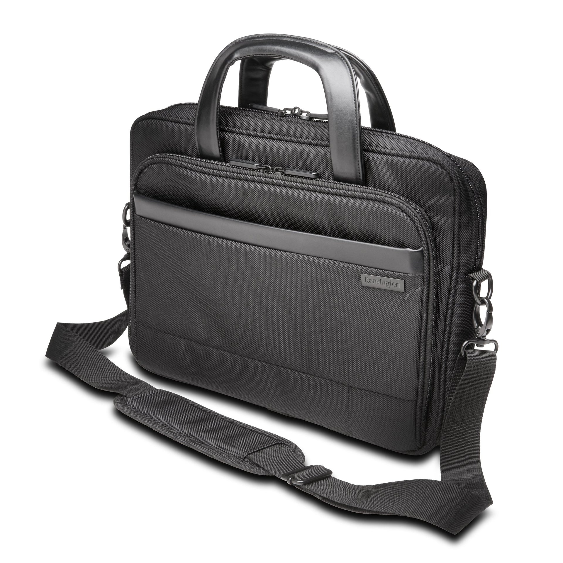 Kensington Contour™ 2.0 Executive Laptop Briefcase — 14". Case type: Briefcase, Maximum screen size: 14", Carrying handle(s), Shoulder strap. Weight: 28.2 oz (800 g). Surface coloration: Monochromatic
