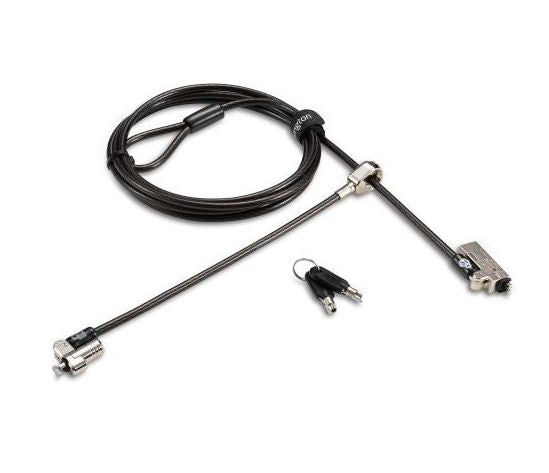 With today's slim laptops with Nano security slots, a typical cable lock head may fit, however the lock can be thicker than the laptop itself. This can prevent the device laying flat, unevenly raising it off the desktop. A redesigned version of the innovative Slim NanoSaver® Laptop Lock, the Slim NanoSaver® 2.0 Dual Headed Lock features a smaller lock head, with the locking cleat positioned low and the key cylinder up high and out of the way. This careful sizing and positioning of components has created a premium locking solution that won’t block ports and allows ultra-thin and 2-in-1 laptops with Nano lock slots to lie flat and stable. Verified and tested for industry-leading standards in torque/pull, foreign implements, lock lifecycle, corrosion and other environmental conditions, the Slim NanoSaver® 2.0 Dual Headed Lock features a MicroSaver® 2.0 secondary lock to secure peripheral accessories such as a monitor, hard drive, printer or docking station with a standard size Kensington security slot — all in one solution. The cut-resistant carbon steel cable is wrapped in a protective sheathing to help keep attachment points such as desks and tables free from scratches. Additional features include a 5mm keying system - common across all of Kensington’s latest locks so there’s only one keying system to manage - while the smaller key opening helps thwart picking attempts; Register & Retrieve™, Kensington’s online key registration program that allows for quick, secure and free key replacement if ever lost or stolen. A five-year limited warranty means you can rest assured knowing you’re covered by Kensington, inventor and a worldwide leader in laptop security locks. A NanoSaver® primary lock secures laptops and other devices with Kensington’s NanoSaver slot. A MicroSaver® 2.0 secondary lock secures peripheral accessories featuring the standard size Kensington security slot. Cut-resistant carbon steel cable includes a protective sheathing to help keep attachment points such as desks and tables free from scratches. Slim Nano lock head design won’t interfere with I/O ports or raise the device off its surface. Each Kensington lock is precision engineered to meet or exceed rigorous industry standards for strength, physical endurance and mechanical resilience. 5mm keying system - common across all of Kensington’s latest locks - so there’s only one keying system to manage. Smaller key opening helps thwart picking attempts. Register & Retrieve™, Kensington’s online key registration program that allows for quick, secure and free key replacement if ever lost or stolen. Five-year limited warranty, so you can rest assured knowing you’re covered by Kensington, inventor and a worldwide leader in laptop security locks.