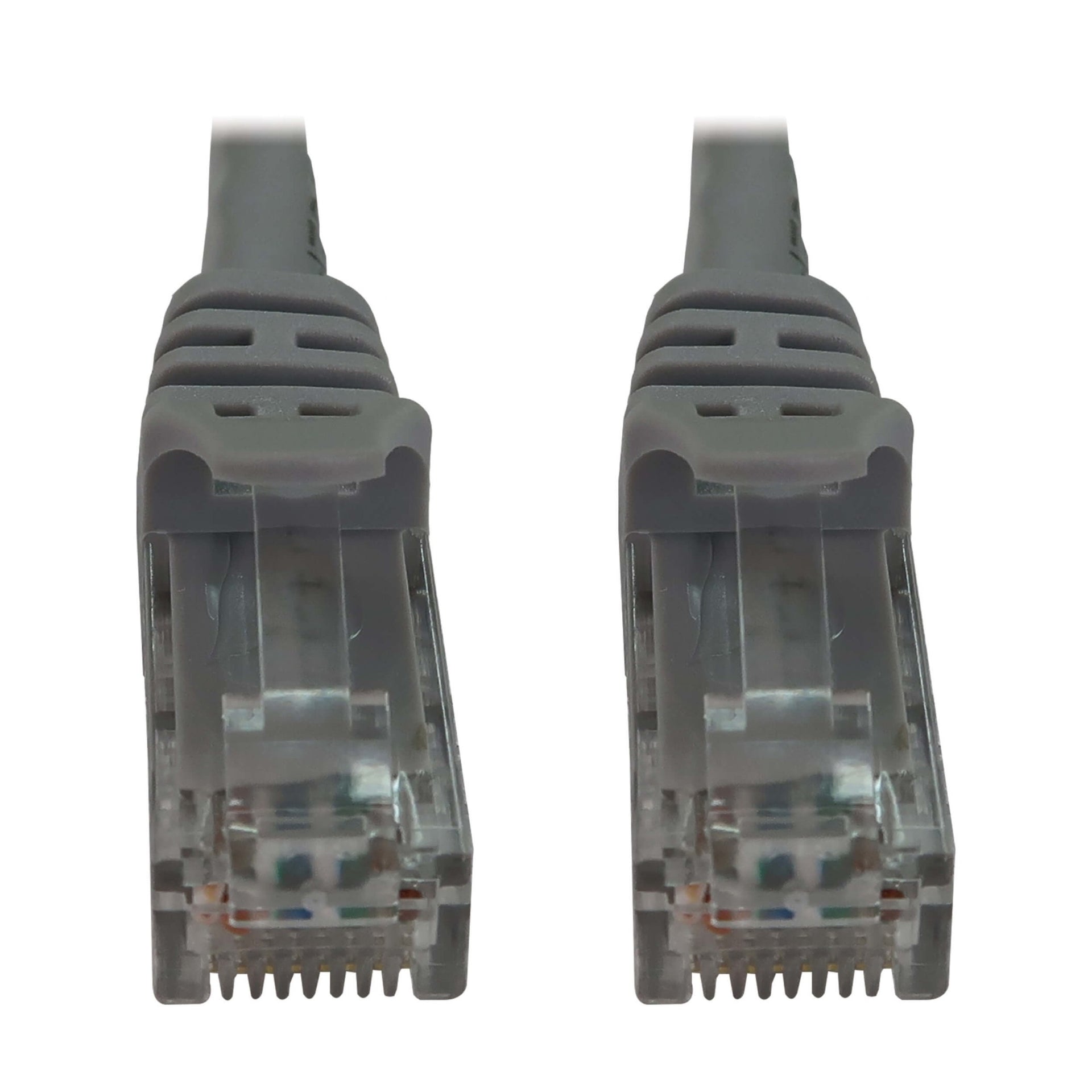 Cat6a Cable Ideal for Your High-Density 10 Gigabit Ethernet Network This Cat6a 10G Ethernet cable with RJ45 connectors is recommended for connecting network components like printers, computers, copiers, routers, servers, modems, hubs and switches in high-density data centers and network closets. Designed for fast transmission and excellent signal quality, the N261-050-GY ensures peak performance throughout your LAN. Supports Power over Ethernet to Save You Money and Give You More Installation Choices Because this Cat6a cable supports PoE, it can supply the power to operate compatible PoE devices, such as security cameras, VoIP telephones, point-of-sale kiosks and access control devices. This saves you the expense and effort of purchasing, connecting and installing individual power supplies for each device. It also helps you install PoE devices in areas far away from AC outlets, such as poles or ceilings. Snagless RJ45 Male Connectors Add Extra Protection The RJ45 connectors’ snagless design protects the locking tabs from being damaged or broken off during installation. The contacts feature 50-micron gold plating to help ensure the most accurate signal transfer possible, improving near-end crosstalk (NEXT) performance to 500 MHz. Gray Jacket Helps Avoid Misidentification That Can Cause Costly Downtime The cable has a gray PVC jacket, which is easy to identify quickly in a crowded patch panel or switch and helps prevent the cable from becoming accidentally disconnected. Premium Construction for Superior Performance Manufactured from 24 AWG copper wire, the four-pair stranded cable is rated for speeds up to 10 Gbps. Integral strain relief gives the unshielded cable extra flexibility, reduces stress and helps the cable move freely without cracking or breaking loose from the connector.
