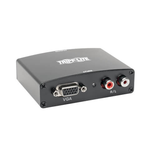 Tripp Lite's P116-000-HDMI VGA + Audio to HDMI converter is the perfect solution for using your older laptop or PC with your new HDMI display. Simply connect your computers VGA and Audio ports to the converter, and the converter to the HDMI port on your display, and you are ready to go. No software or drivers required. If your computer has only a 3.5 mm. Mini Stereo Audio jack, connect it to the converter using a 3.5 mm. to RCA adapter cable such as Tripp Lite's P314-006. You can also convert the RGB Video and Stereo Audio signals on your DVD player, DVR, etc., for use on your HDMI display (Component Video to VGA adapter required) Furthermore, you reduce your equipment costs by eliminating the need to upgrade your computer's video card. The P116-000-HDMI supports HD video resolutions up to 1080p, and computer video resolutions up to 1280 x 1024. Supports 24-bit True Color (8-bits per channel), and HDCP compliant. - Connect your VGA laptop or PC to a HDMI display to enjoy high definition video and audio - Convert the RGB Video and Stereo Audio signals from your DVD player, DVR, etc., for use on a HDMI display (Component Video to VGA adapter required) - Plug-and-Play, no software or drivers required - Supports HD video resolutions up to 1080p, and computer video resolutions up to 1280 x 1024 - Supports 24-bit True Color (8-bits per channel) - Reduce equipment cost by eliminating the need to update your computer's video card - HDCP compliant