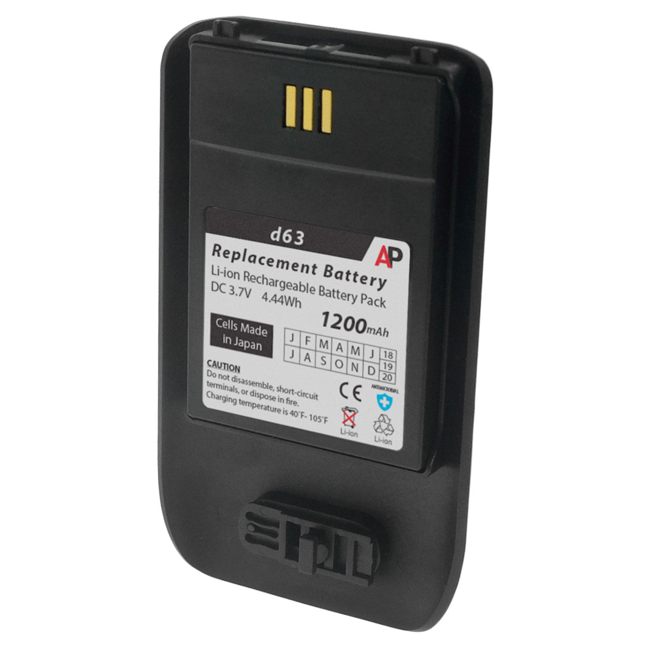This replacement battery is 100% compatible with the Ascom d63 phones and battery chargers. The 1200 mAh capacity rating is guaranteed to extend phone Talk Time by 30% or 4-6 hours longer than the Ascom 660497 (black), 660507 (white), and 490933A (both) batteries, which only offer a 920 mAh capacity rating. Battery uses Japanese power cells from Panasonic which are proven to deliver maximum battery run time and total cycle life.
