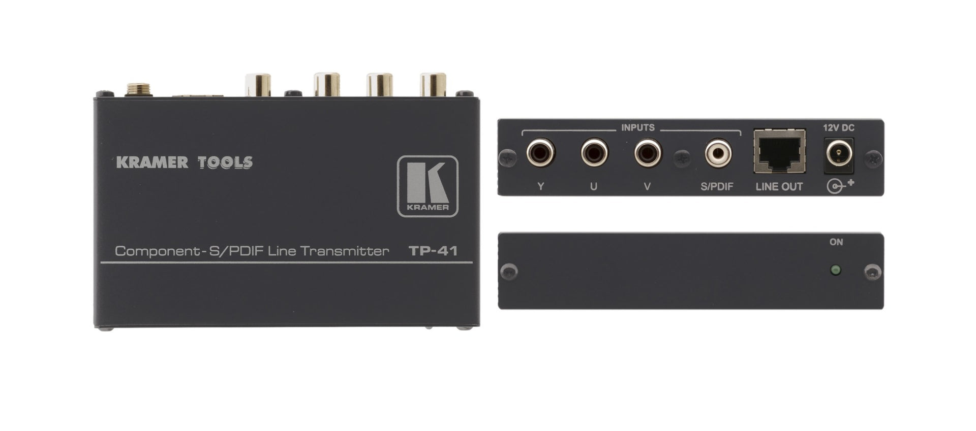 The TP-41 is a twisted pair transmitter for component video (YUV) and S/PDIF audio signals. The TP-41 transmitter converts component video (YUV) and S/PDIF audio signals into a twisted pair signal and the TP-42 converts the twisted pair signal back into component video (YUV) and S/PDIF audio signals.
