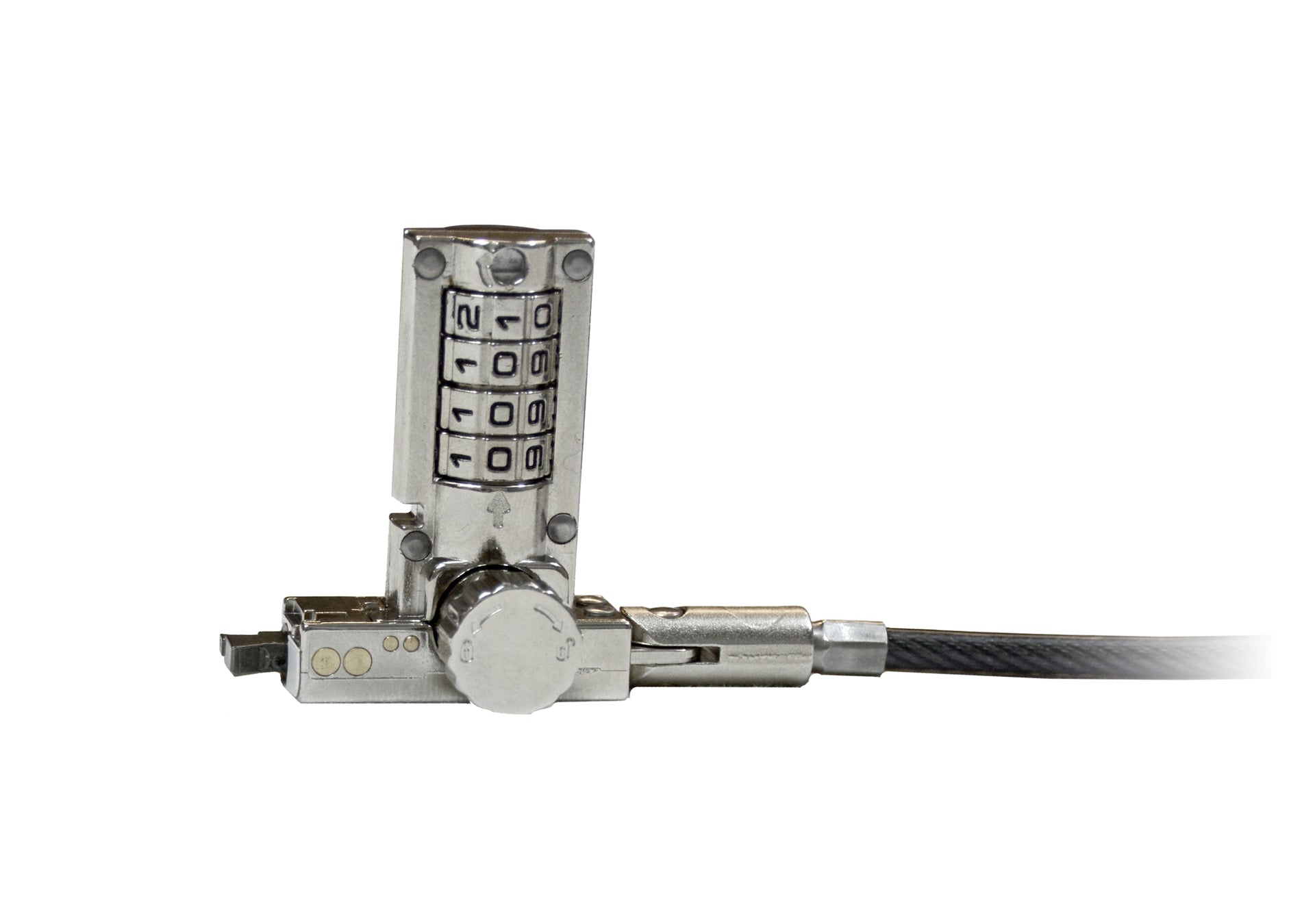 This locking system also includes the patented Noble peripheral cable trap allowing you to secure your power cables or other peripheral devices with a single lock.