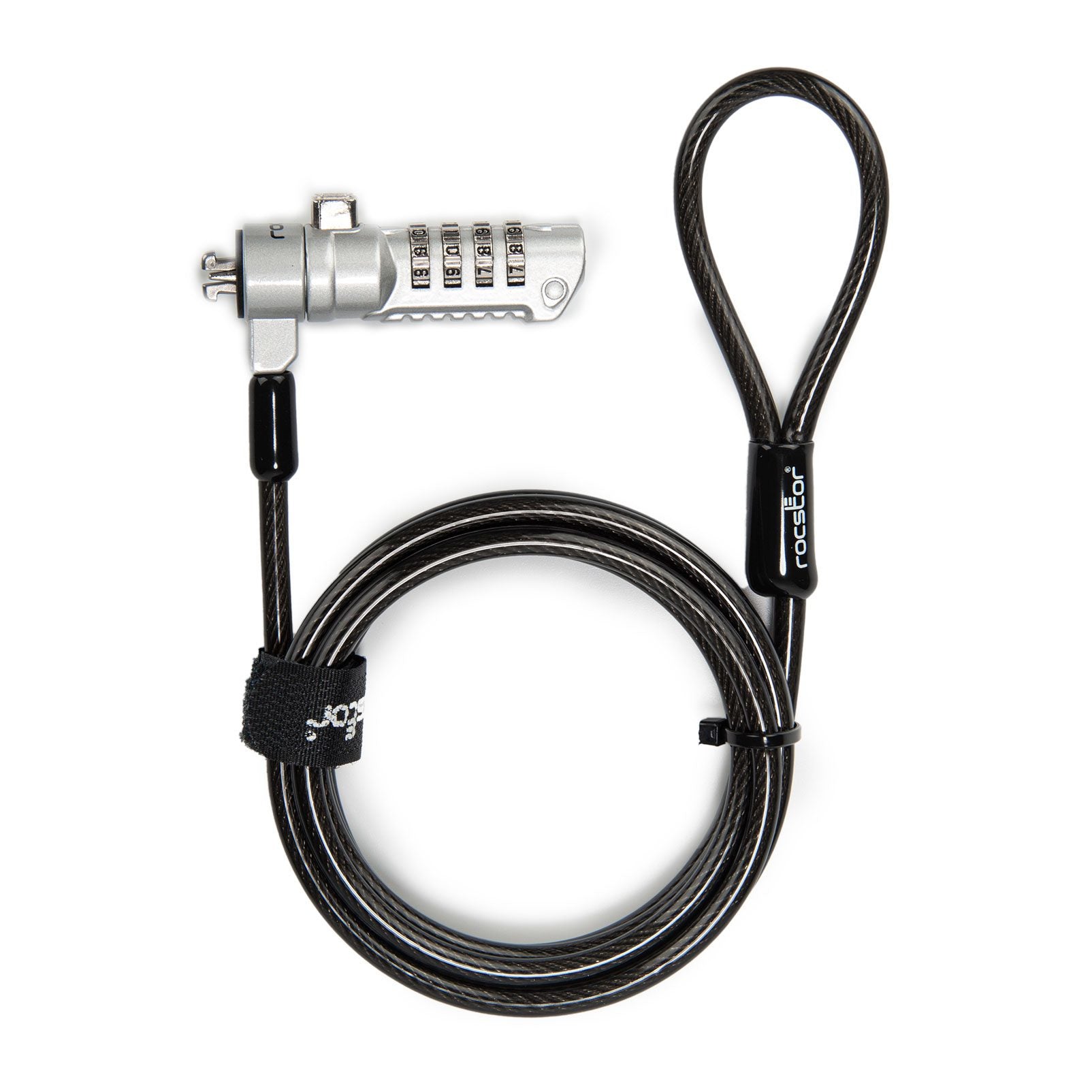 Rocbolt C23 Laptop Slim Security Cable 4-Digit Combination Lock. The Rocstor Rocbolt Premium and Heavy-Duty 4-Digit Slim Combination Cable Lock provides an enhanced security for your slim notebooks, slim Laptops, Chromebooks, Desktops, Monitors, Docking Stations, Projectors and other compatible devices in offices, schools, and other public areas. Designed for standard K-Slot locks, Rocbolt security combo locks provide an exceptional asset security and helps to reduce theft. They are tested for torque/pull, foreign implements, lock lifecycle, corrosion, key strength, and other environmental conditions. Nearly thousands of notebooks and other portable devices are stolen everyday – protect your valuable assets by using the heavy-duty Rocbolt cable combination lock system. The push-button design enables one-hand operation for easy installation. Rocstor’s Rocbolt provides a strong and heavy-duty lock head system which prevents intruders tampering with the lock. Rocbolt lock comes with a preset combination which can be easily reset and provides a 6ft galvanized heavy-duty steel cable. Rocbolt security cables are built tough, affordable and have two (2) years of warranty.Lock and Register – Lock Management PlatformRocstor’s Lock and Register cloud-based management platform provides all users, IT managers, and administrators the right solution to register their key or lock combination codes. Each user, IT Manager or administrator is provided an individual account for the registration process. Individual users can simply register the lock’s unique key number or their lock combination code. IT managers or administrators can also manage their organization’s key or lock combination registration in large scale deployment. Either by user’s single lock registration or large master key registration. The registration is easy, safe and it enables a simple process which safely records the combination codes and key numbers so users or IT managers can update user information, retrieve combination codes and request for key replacements.